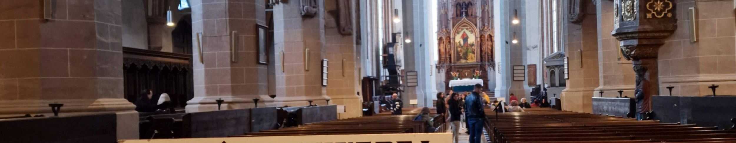 A, mi se pare și că cineva a udat din greșeală un semn cu „nu atinge”, că a făcut pui și acum e câte o pancartă rezemată de fiecare obiect din biserică.