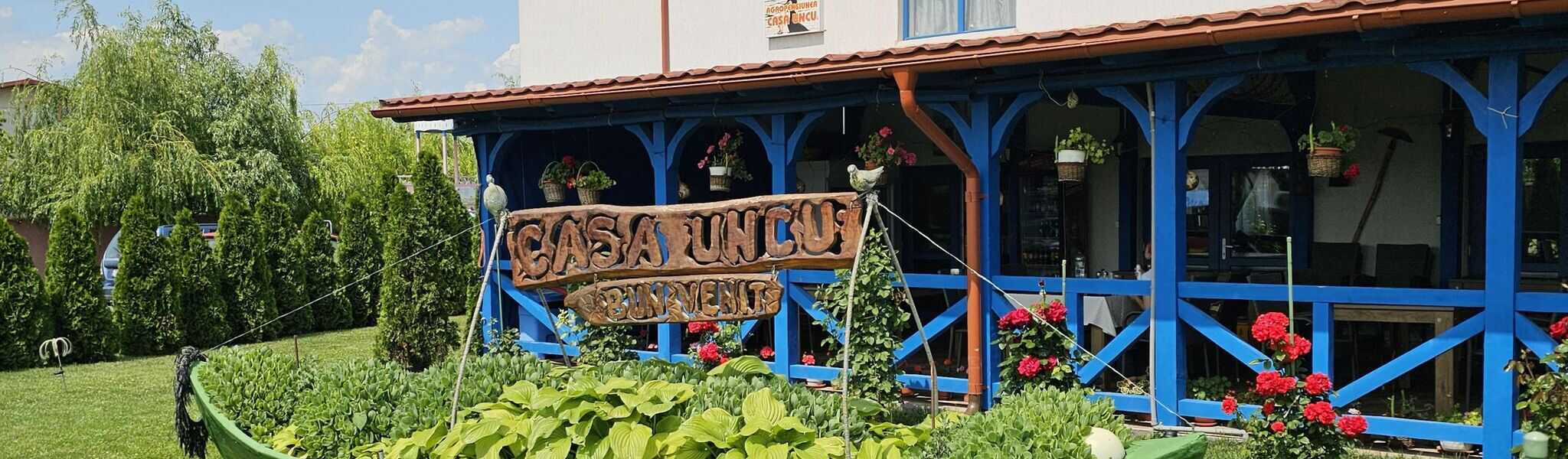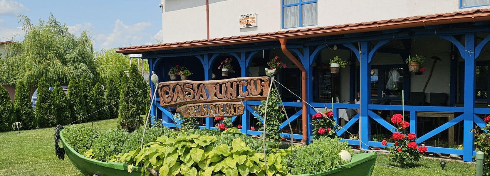O să dai de o curte cu multă verdeață, flori și o terasă generoasă. Să nu te aștepți la un meniu prestabilit, ci îți vor spune ei ce-ți pot găti în acel moment.