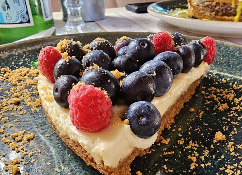 Țin minte că am mai mâncat acolo, între altele, și o plăcintă cu ragu de vită, foarte bună, și un soi de cheesecake cu lavandă și fructe de pădure – la fel de bun.