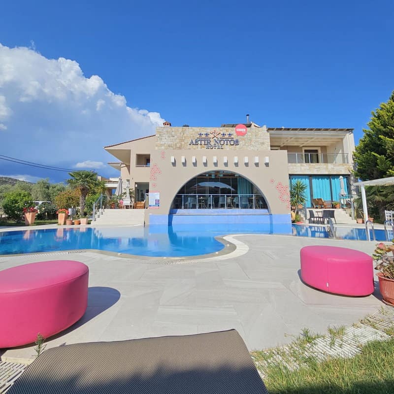 Astir Notos Hotel din Potos, Thassos e o opțiune de cazare decentă. Câteva minusuri, cum ar fi căzile minuscule și cafeaua proastă, sunt compensate de plusuri, de la curățenie la personal.