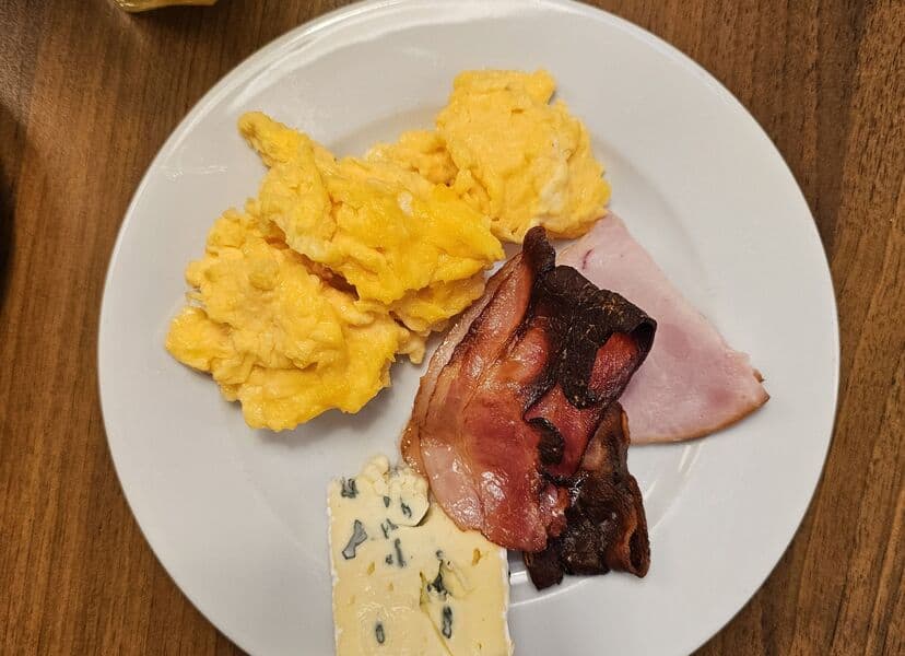 Micul dejun foarte bun și variat: de la ouă gătite în mai multe feluri, la diverse specialități de brânzeturi, patiserii de tot felul, fructe și chiar prosecco. Mesele în zona de mic dejun o idee cam înghesuite pentru gustul meu. Însă noi, imediat ce terminam de mâncat, ne luam o cafea și mergeam în lobby unde era amenajat un loc foarte confortabil și cozy.