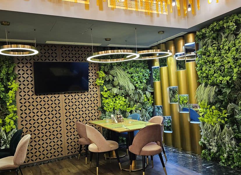 Decorul se vrea unul modern și la prima vedere nu e rău deloc, dar s-au folosit exagerat de multe plante artificiale. De fapt toate zonele cu verdeață din hotel sunt artificiale. E și asta o estetică, dar deloc pe gustul meu. Și de ce ai pune o plantă din plastic în cameră?