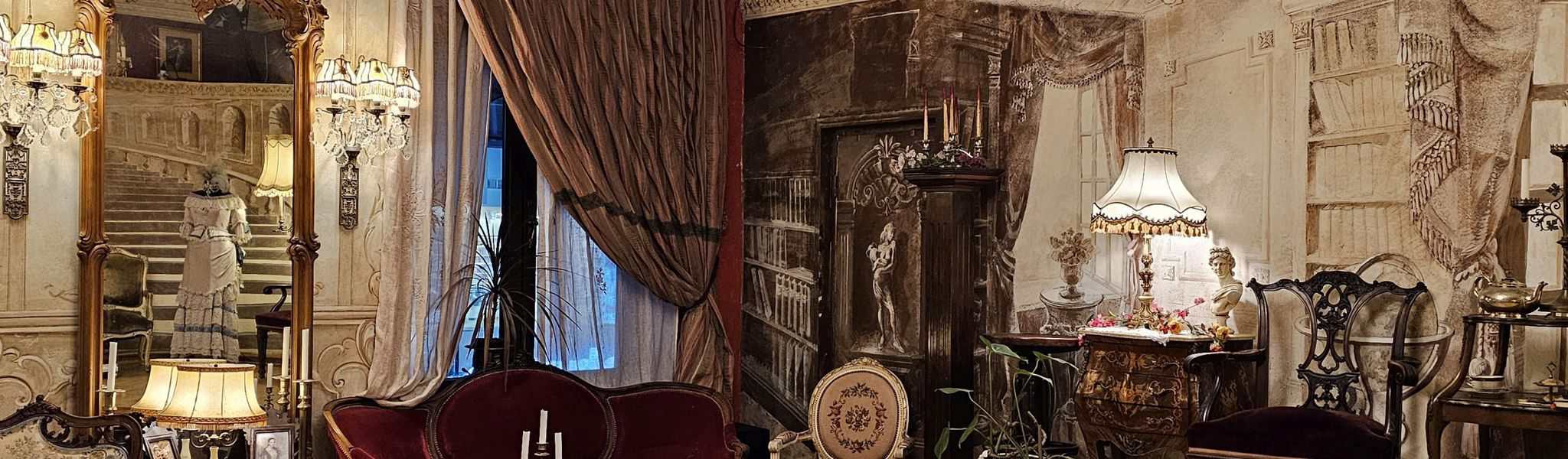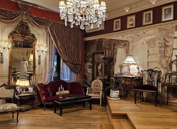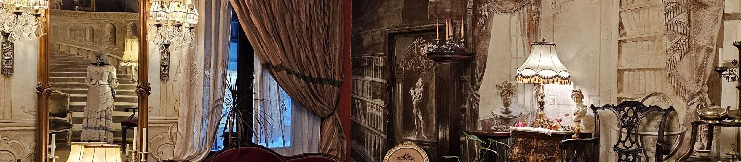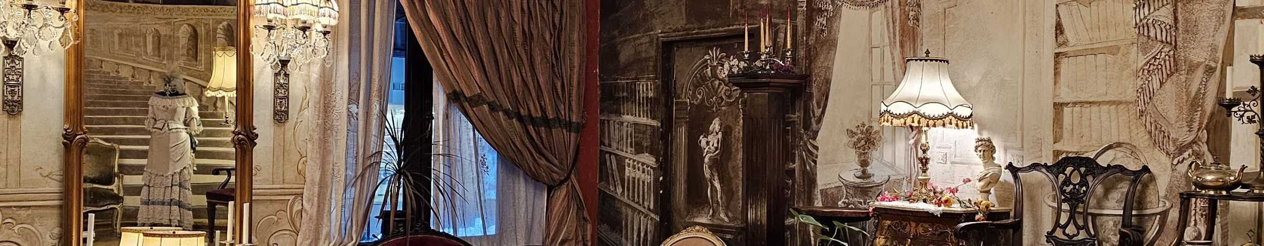 În două dintre încăperile muzeului chiar sunt refăcute două interioare, unul în stil oriental şi unul occidental, cu detalii şi decoruri specifice, fiecare cu farmecul lui.
