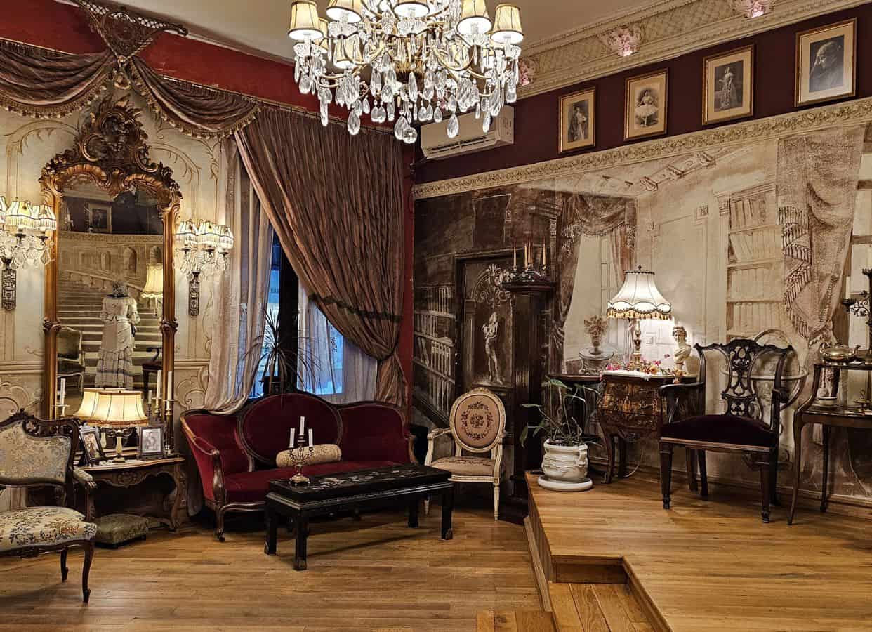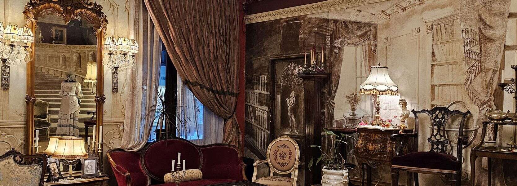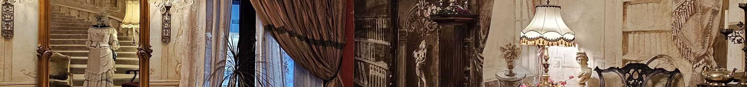 În două dintre încăperile muzeului chiar sunt refăcute două interioare, unul în stil oriental şi unul occidental, cu detalii şi decoruri specifice, fiecare cu farmecul lui.