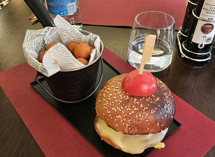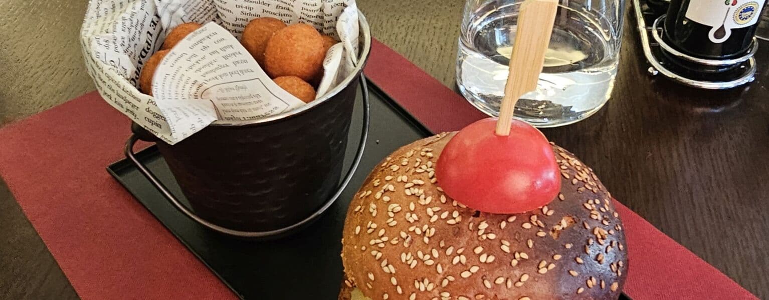 Dincolo de asta, experiența a fost OK. Am luat un burger cu carne de cerb foarte bine pregătită, cu o chifla ușor cam seacă și căruia mi s-a părut că i-ar fi venit bine și o legumă de vreun fel. Cartofii de lângă el și ei proaspeți și bine prăjiți; puțin deranjantă prezentarea pe o „mistrie” prea mică pentru a mă putea desfășura în voie.