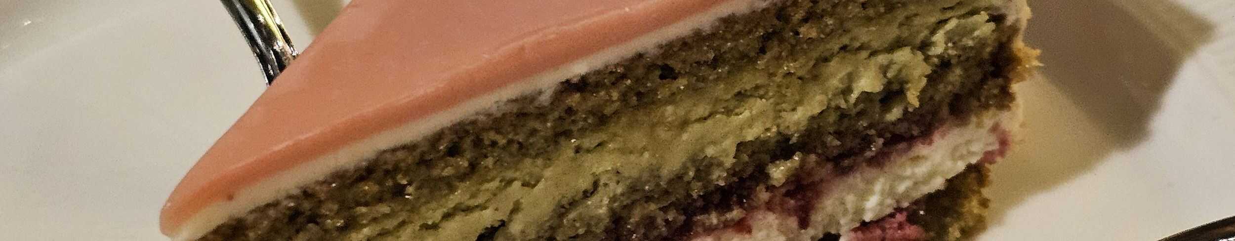 Deși mă tentase un cremșnit, am zis să sar peste desert că deja mâncasem cartofi cu pâine 😂. Dar n-am rezistat să nu gust din desertul comandat de Radu, un tort cu fistic, foarte bun, dulce exact cât trebuie.