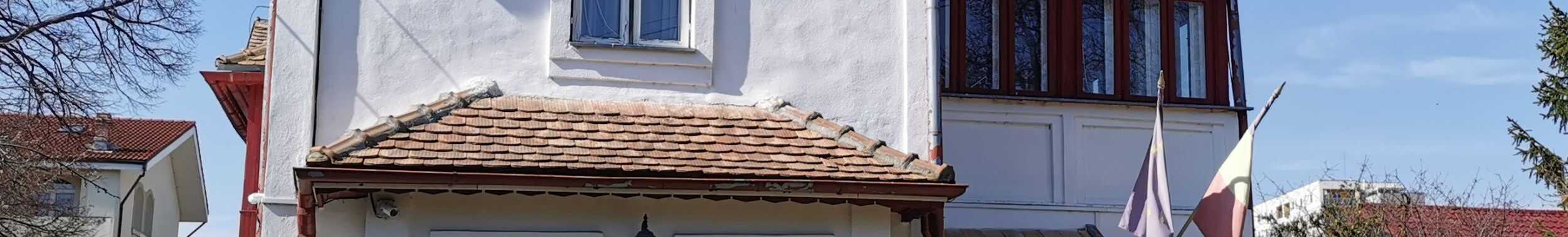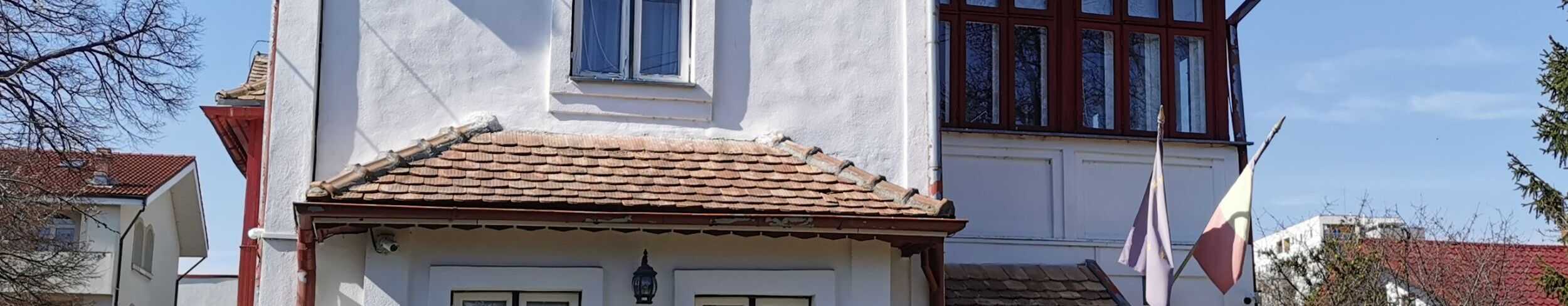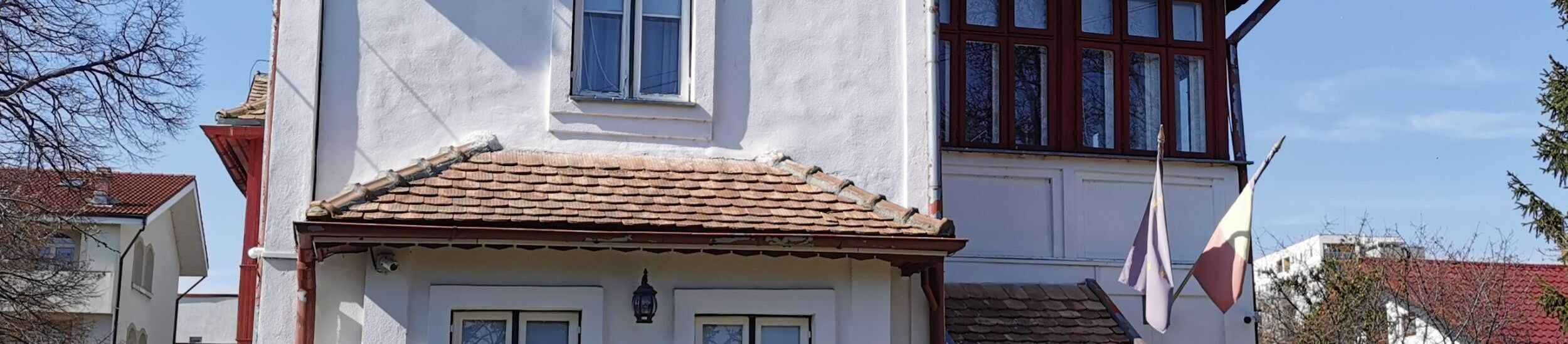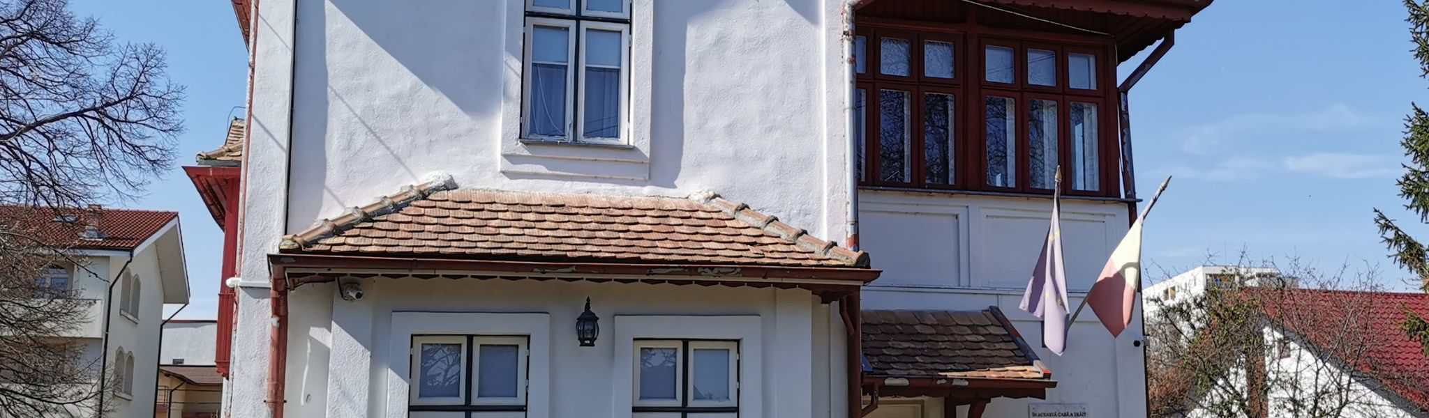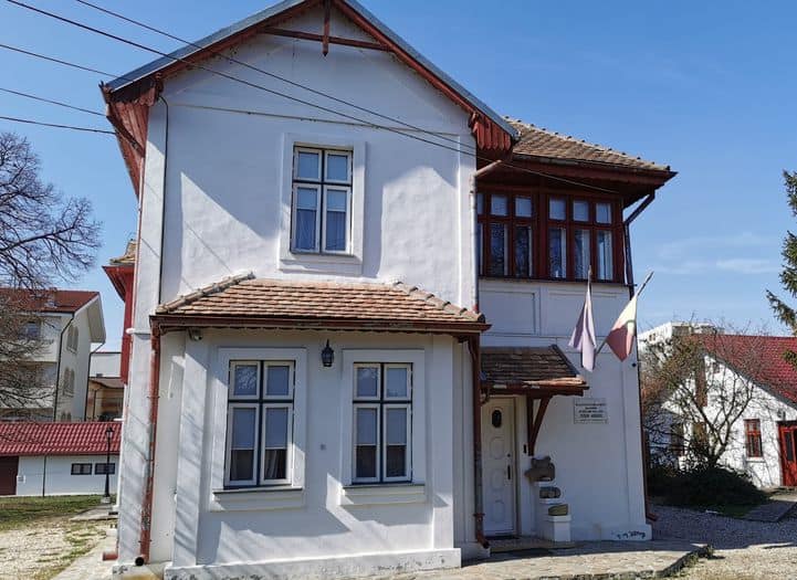 O să vă întâmpine o casă mare, cu etaj si mansardă, vopsită în alb şi roşu, simbolul Mărțişorului. Ni s-a spus că privită de sus pare că ar semăna cu o mânăstire. Posibil ca poetul să se fi lăsat inspirat de perioada in care a fost călugăr.