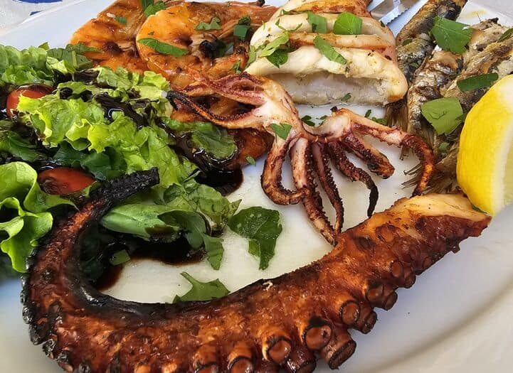 Eu am mâncat doradă, red snapper și biban de mare la grătar, impecabil gătite. Garnitura este inclusă: cartofi prăjiți și diferite legume la cuptor sau orez cu legume.