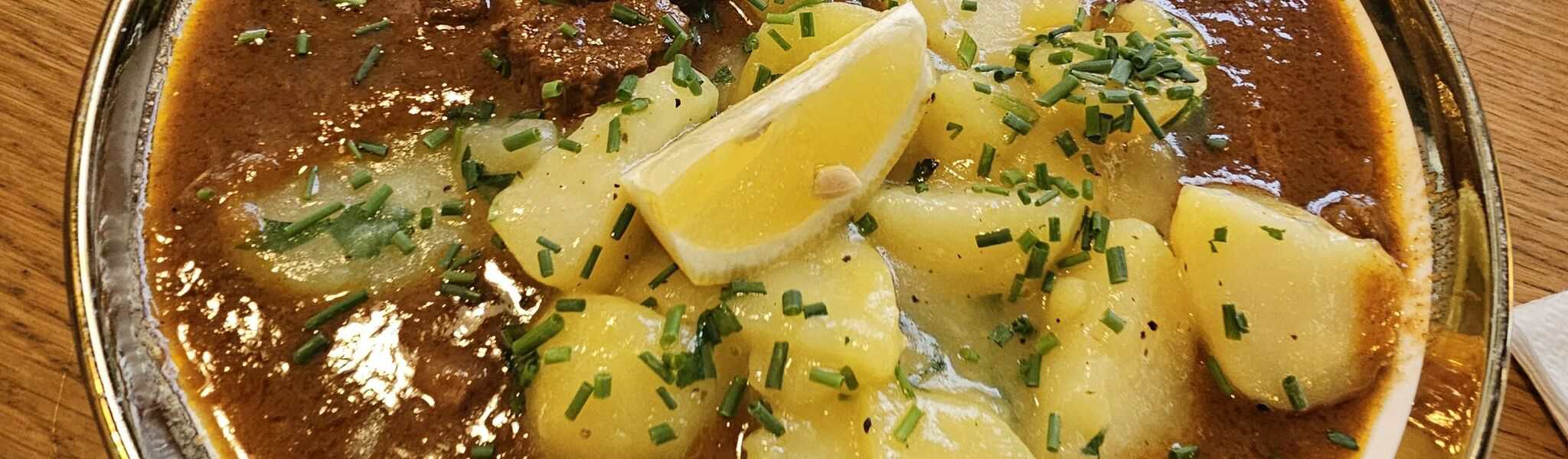 Eu am mâncat un gulaș excelent, de lins pe degete, chit că inițial m-a surprins o notă foarte discretă de curry. M-aș întoarce pentru el fără ezitare.