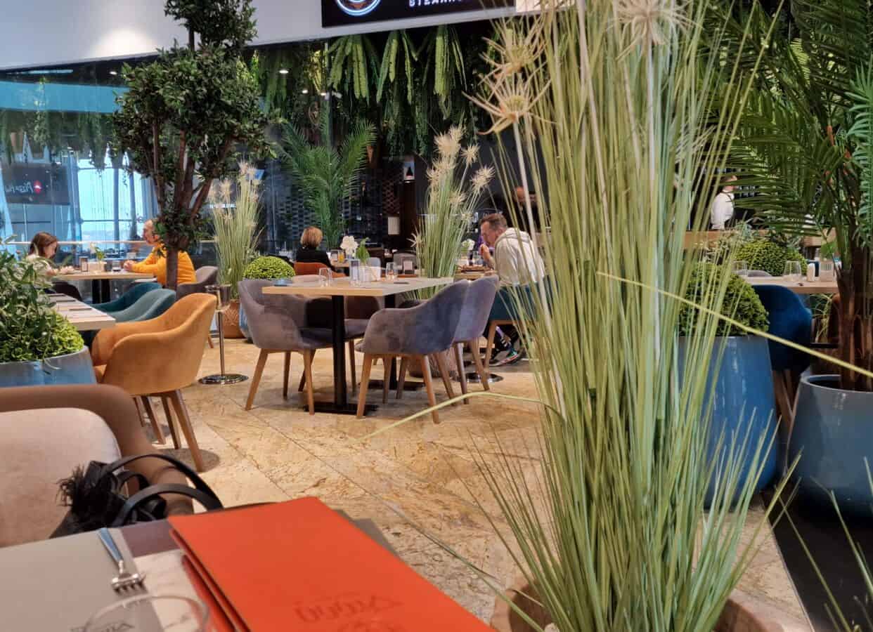 Partea bună, dacă o pot considera aşa, e că, fiind un loc cu prețuri mult peste celelate restaurante din mall, aici e foarte liber şi aerisit, nu-ți alearga nimeni pe langă farfurie.
